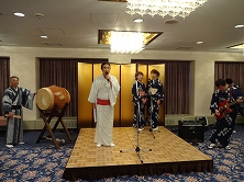 開会式には松井一實広島市長もご臨席いただき、大会初日は私の大会長講演の後、鎌田實先生による「頑張らないけどあきらめない」のご講演です。つらい記憶も未だ薄れない東日本大震災への支援の活動などもお話いただきました。この度の広島大会へは被災地のケアマネジャーさんも参加されており、鎌田實先生のご講演で大変勇気をいただけたのではないでしょうか。午後からは橋本泰子理事長による教育講演を始め、白澤政和副理事長、堀尾愼彌理事にコーディネートしていただいたシンポジウム2セッションを開催。その後、エーザイ株式会社との共催で「認知症を考える市民公開講座」を行いました。講師は私の小学校からの同級生で竹馬の友である風見しんごさんです。風見さんの講演はご両親の介護や大切な娘さんを交通事故で失った体験を通じ、家族の絆の大切さを訴える内容で、満席の広島国際会議場フェニックスホールのあちらこちらからすすり泣く声が聞こえ、心の振るえを会場全体で感じるすばらしい講演会となりました。不安の中、始まった大会第1日目ですが、夜には懇親会を無事開催でき、全国からお越しいただいた皆様と東京大会から1年ぶりの再会を喜び、広島伝統の神楽「やまたの大蛇」をご堪能いただきました。